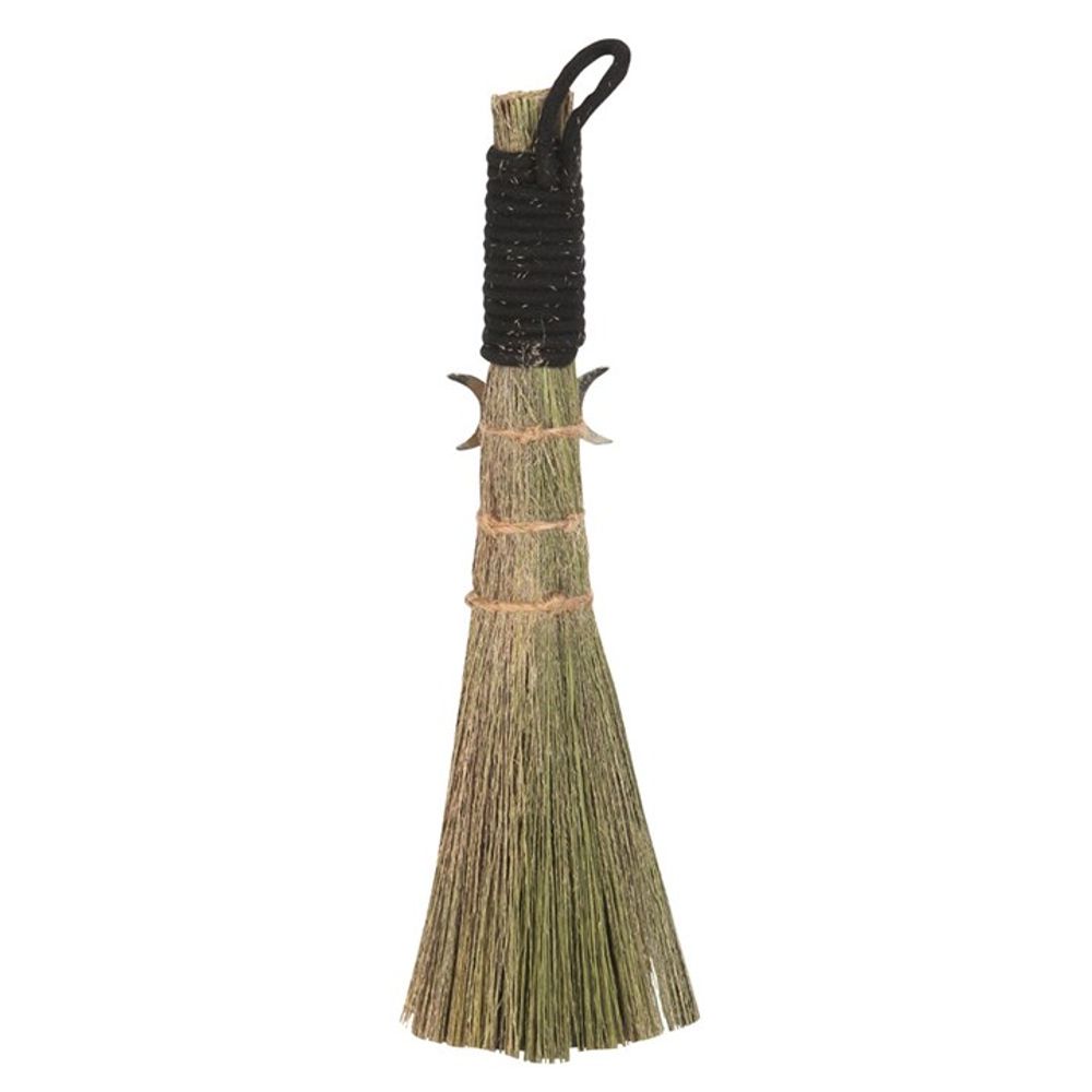 This besom broom, also called an altar brush, is a traditional tool used for both practical and spiritual purposes. Whether brushing away dust from within the home or cleansing an altar space, this small broom will sweep away all unwanted dirt and negative energies. Bound with jute string and finished with a metal triple moon charm.