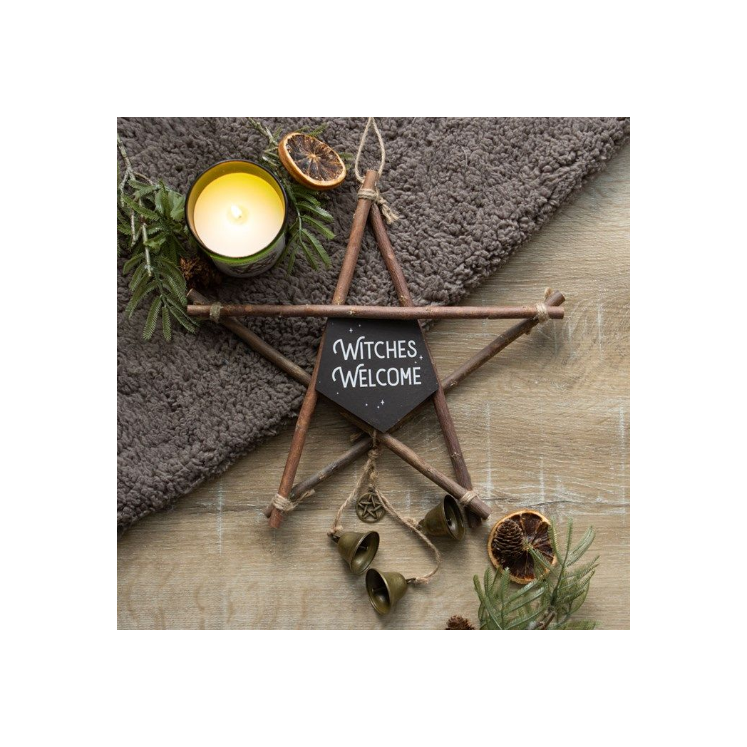 30cm Witches Welcome Willow Pentagram Sign with Bells
