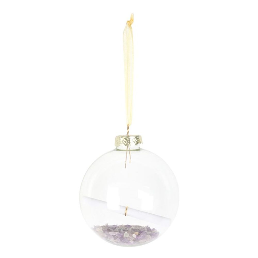 Bring a touch of magic and positive energy to the festive season with the Amethyst Manifestation Christmas Bauble Kit, perfect for creating a unique and meaningful ornament. This kit combines the beauty of Christmas decorations with the powerful energy of amethyst crystals, making it a perfect addition to any festive decor. Write a manifestation message and place it inside the bauble to promote positive, calming and healing energy. Kit includes a clear bauble, amethyst crystals, and decorative elements to create a truly personalised ornament.