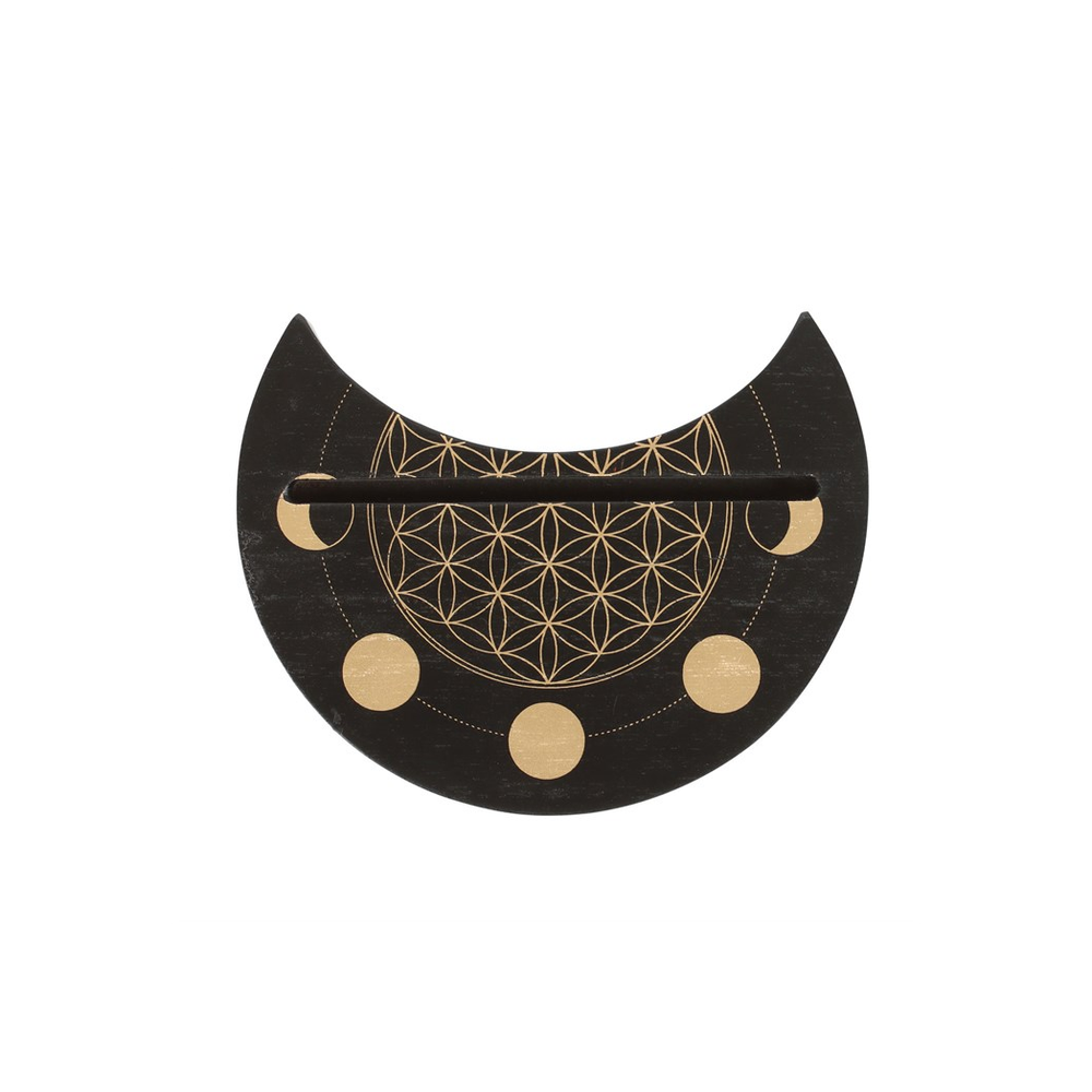 Black Flower of Life Crescent Moon Tarot Card Stand