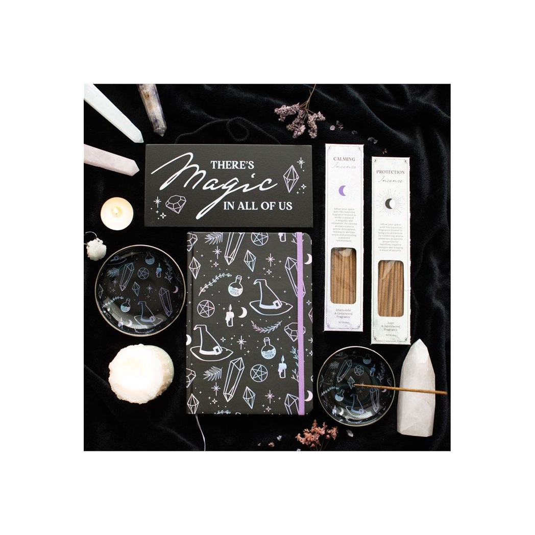 Store jewellery and other precious bits and bobs in this crystal witch design trinket dish. With iridescent illustrations on a black background, this piece is a pretty magical accessory for any living space.