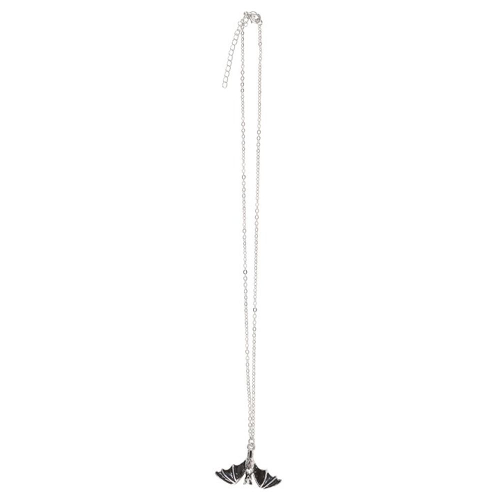 This fun necklace features a dangling stainless steel bat and is a unique piece to add to any jewellery collection. Perfect for adding an edgy flair to your look. The intricately designed bat dangles from a stainless steel chained necklace. Presented on a matching backing card.