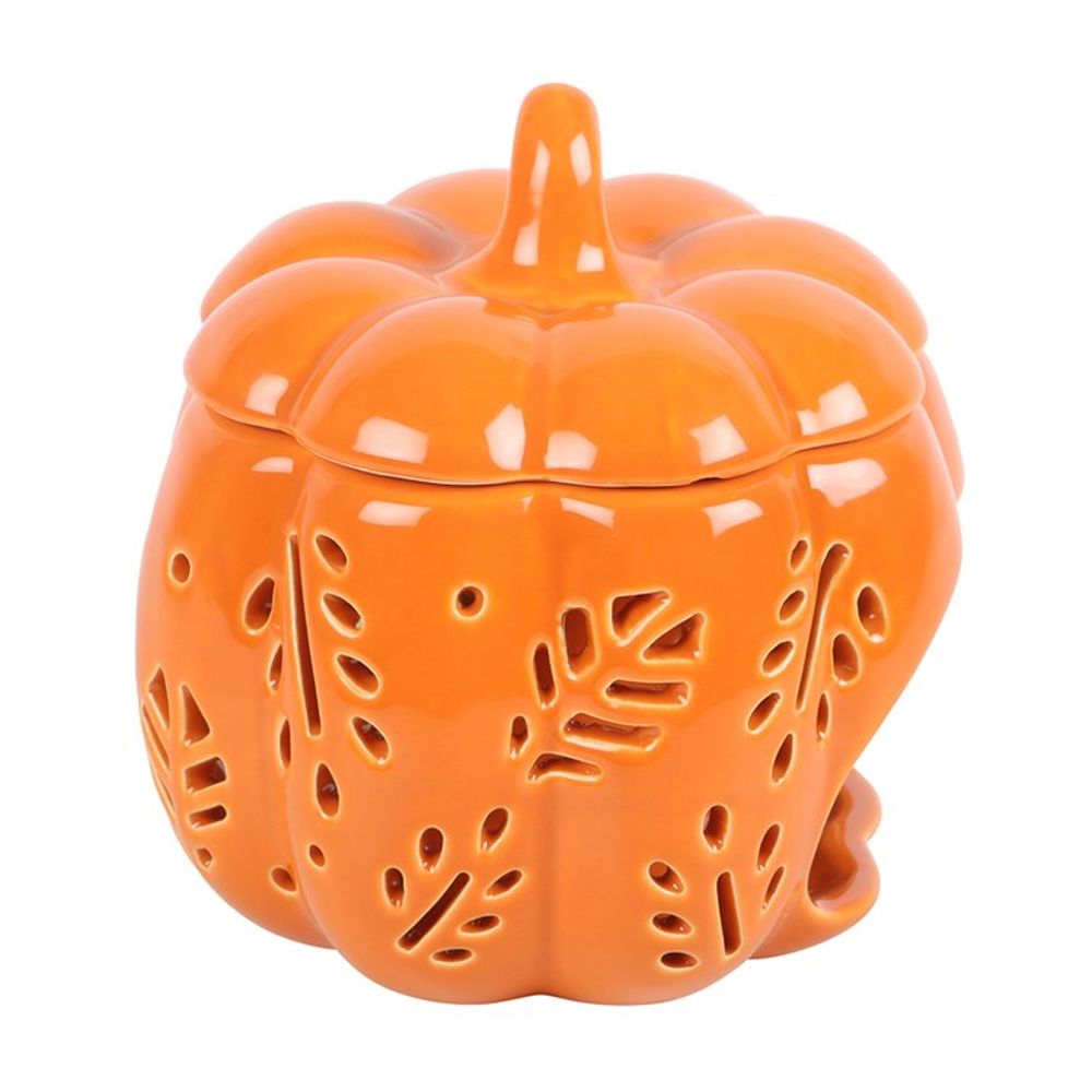 Add a warm glow to your living space with this orange pumpkin oil burner with cut-out leaf details. Perfect for adding some understated autumnal touches around the home. Pair with your favourite seasonal scents to give a cosy atmosphere as the nights start to draw in. Recommended for use with fragrance oil diluted with water.