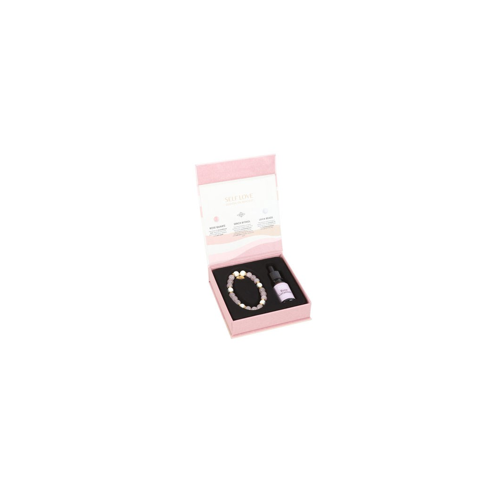 This self love lava bead bracelet and essential oil gift set uses aromatherapy to enhance the metaphysical healing power of crystals. Crafted with natural rose quartz and lava beads, the bracelet serves as a diffuser for the included rose geranium oil, promoting love and confidence. The addition of the Celtic Serch Bythol charm symbolises everlasting love, making it a perfect gift for those seeking to practice self care as a daily ritual. Crafted with durable materials and packaged in a luxury gift box, this elasticated bracelet combines beauty and functionality, offering a thoughtful present for various occasions.