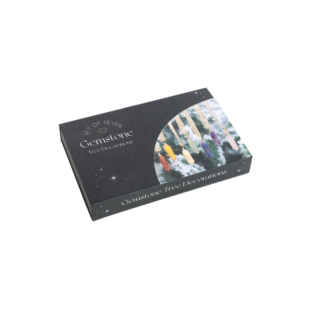 Adorn your Christmas tree with this set of 7 hanging crystals, each chosen for its unique spiritual properties. Featuring goldstone for beauty, orange carnelian for motivation, yellow jade for positivity, green aventurine for good luck, sodalite for harmony, amethyst for tranquility, and rose quartz for togetherness, these crystals will amplify festive spirits throughout the Christmas season. Perfect for creating a harmonious and joyous atmosphere, these sparkling ornaments not only beautify your tree but also enhance the energy of your home. As each crystal is unique, stone shape and colour may vary from photos shown.