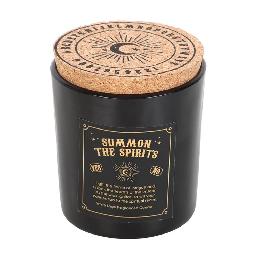 Set a spooky scene with the help of this white sage candle with a mystical spirit board inspired design. When not in use, the cork lid can be used to seal in the scent for a more powerful burst of fragrance once lit. Average 20 hour burn time.